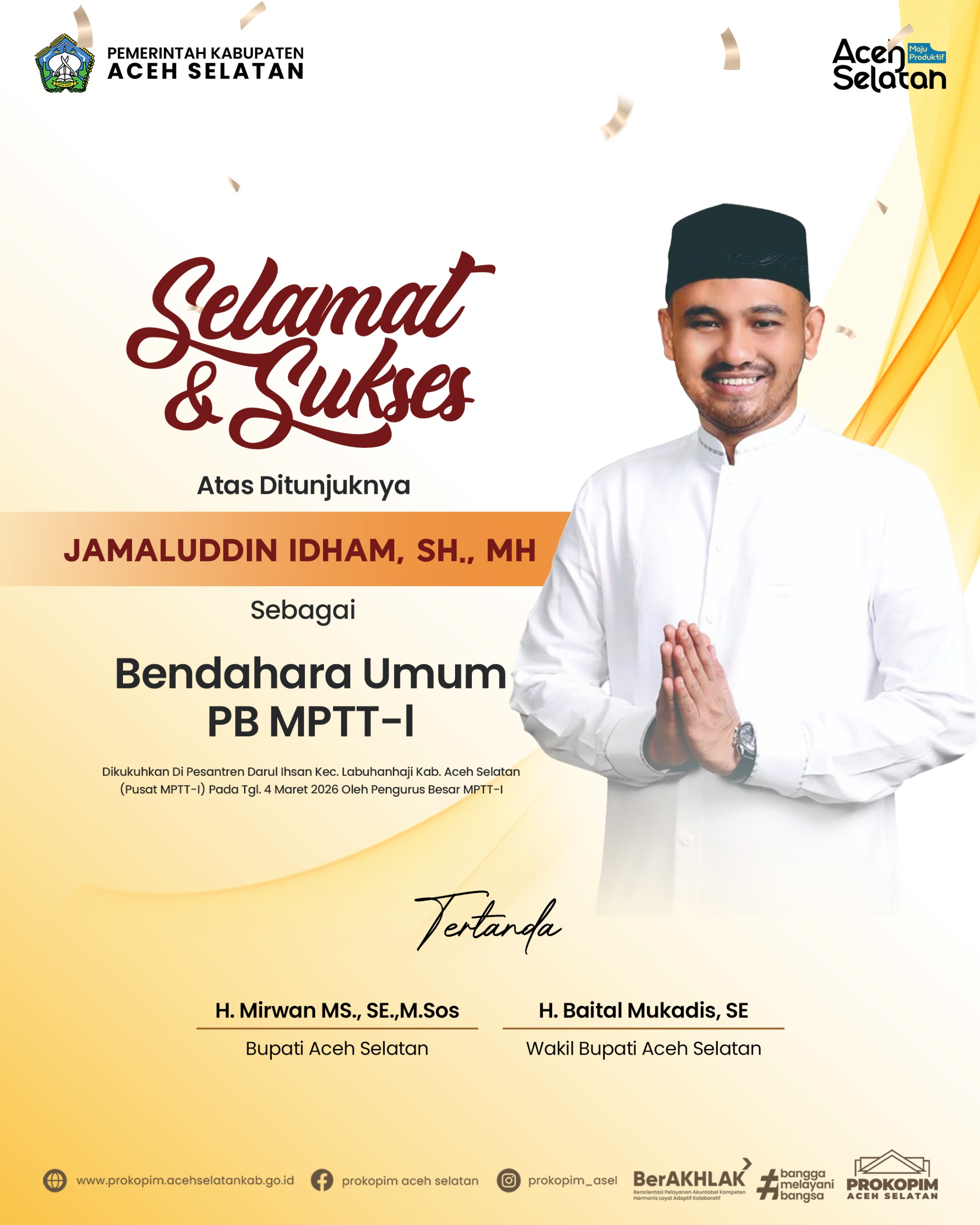Kegiatan tersebut secara resmi dibuka oleh Asisten I Sekretaris Daerah Aceh Selatan, Bapak Kamarsyah, S.Sos., M.M. Dalam sambutannya, beliau menyampaikan apresiasi atas terselenggaranya kegiatan tersebut serta berharap kepengurusan baru mampu membawa organisasi semakin progresif dan bersinergi dengan pemerintah daerah.